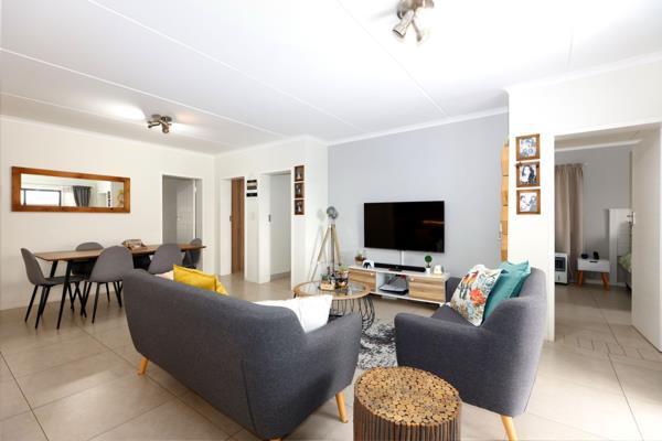 The apartment boasts three well-sized bedrooms, all fitted with built-in cupboards. There are two modern bathrooms, with the main bedroom enjoying the privacy of a full en-suite bathroom.
