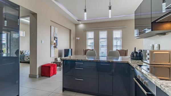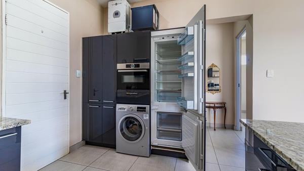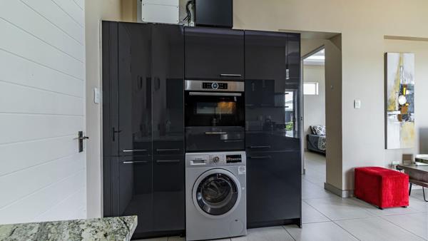 The kitchen is well-equipped, complete with integrated appliances including a fridge, convection microwave, dishwasher and washer dryer. With built-in cupboard space and large breakfast nook, a great space for a morning coffee or to chat with friends. Leading out from the lounge is a covered patio.