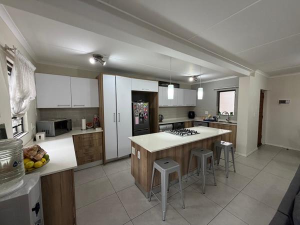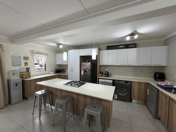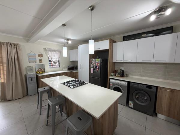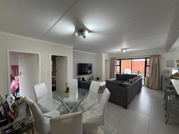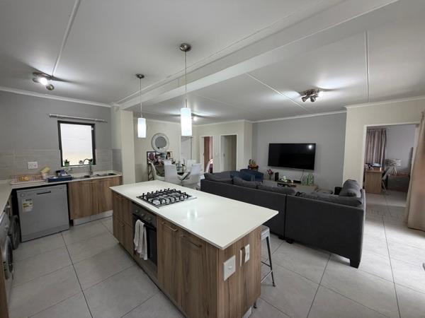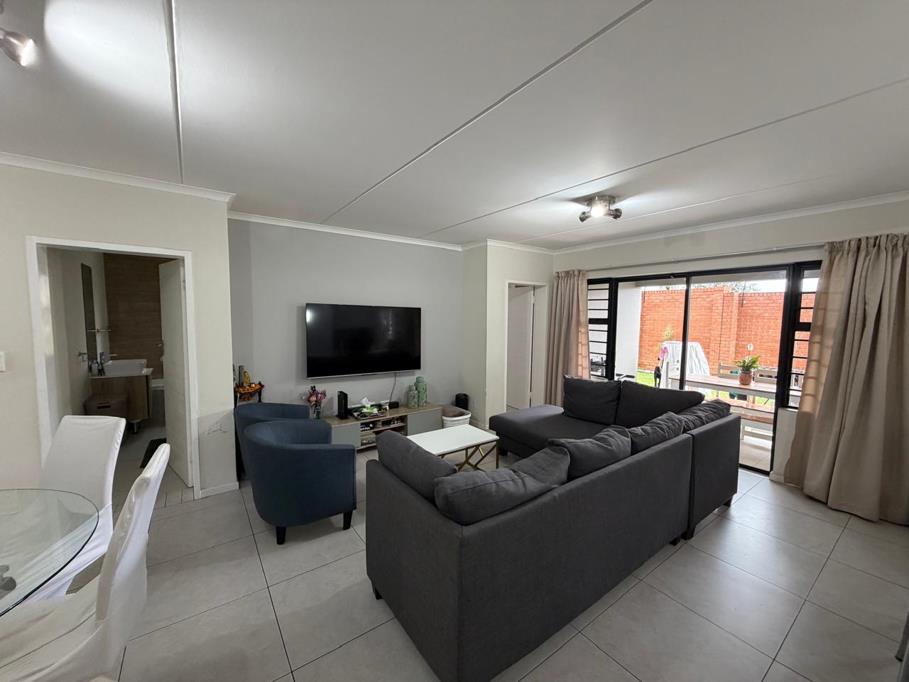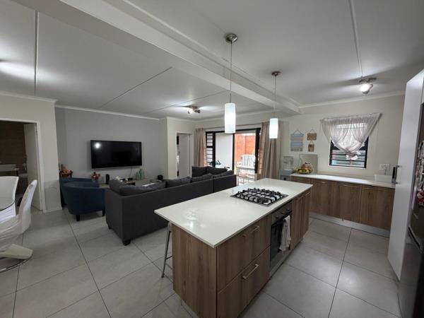 The master suite serves as a tranquil retreat, offering generous cupboard space and a sleek en-suite bathroom, while the two additional bedrooms share a sophisticated full family bathroom. Because this is a ground-floor unit, the transition from the interior to the covered patio is effortless, creating an indoor-outdoor harmony that is perfect for summer braais or watching the kids play on the lawn. This home combines the convenience of apartment living with the expansive feel of a traditional garden cottage.