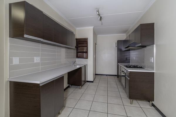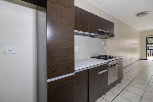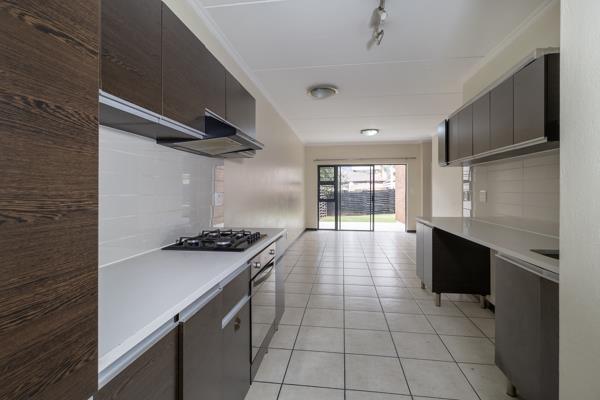 As you walk in, youre welcomed by a sleek galley-style kitchen, with ample cupboard and counter space, flowing into the open-plan dining and living area. Large sliding doors lead out to a covered patio and spacious private garden the ideal space for entertaining, family braais, or simply enjoying peaceful outdoor living.