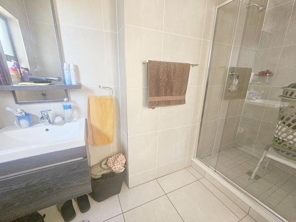 This well-appointed first-floor unit offers a comfortable and modern living space, complete with a private balcony ideal for outdoor dining or relaxing in the fresh air. The apartment features three spacious bedrooms and two bathrooms, including a main en-suite with a sleek, walk-in shower. The open-plan living area is thoughtfully designed for functionality and flow, making it an ideal home for families or professionals seeking extra space and convenience.