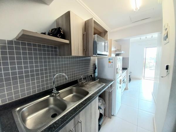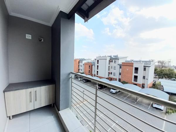 This modern third-floor studio apartment is set in a sought-after, secure complex conveniently located near Greenstone Shopping Centre, major amenities, and just 15 minutes from the International Airport. The open plan layout features a tiled lounge that leads to a sunny balcony with a built-in storage cupboard, perfect for relaxing or studying. The kitchen is neat and modern with granite countertops, glass top stove, under-counter oven, extractor fan, and space for a fridge and washing machine. The tiled bedroom includes ample built-in cupboards and a convenient en-suite bathroom with a shower, basin, and toilet.