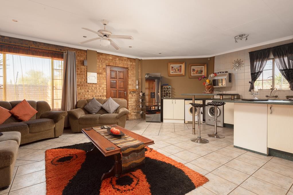 A sliding security door leads from the lounge to a delightful braai area on the patio, perfect for outdoor entertaining.