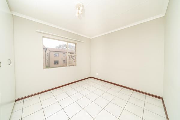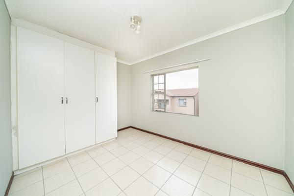 Step outside from the living area through a sliding glass door to an outdoor space, perfect for enjoying fresh air. The property includes one dedicated parking bay and benefits from a small garden area. Residents also enjoy the peace of mind that comes with living in a secure estate, featuring an access gate, well-maintained common areas, and perimeter security.