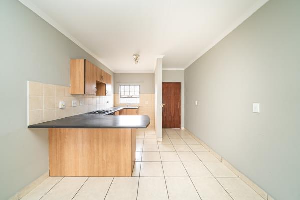 Discover this inviting two-bedroom residence nestled within a secure estate in Albemarle, Germiston. Designed for comfortable living, the property features a well-appointed open-plan lounge and kitchen area, creating a seamless flow ideal for daily life and entertaining. The kitchen is equipped with light wood-effect cabinetry, dark countertops, a built-in electric stove and oven, and a convenient breakfast bar, all complemented by durable tiled flooring and a practical tiled backsplash.