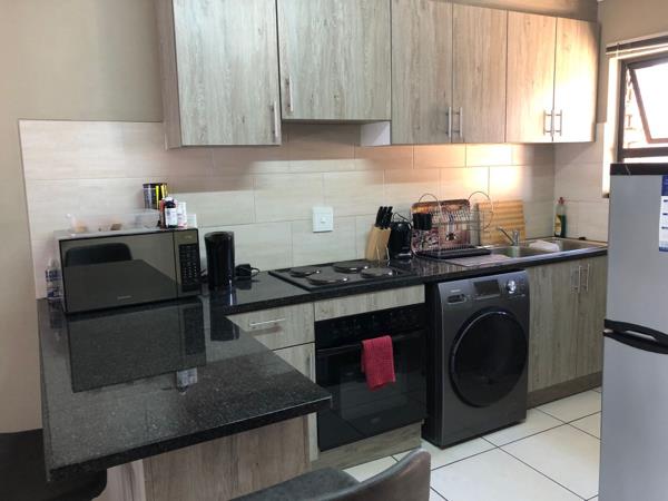 This space offers you that homely beautiful cozy feeling at the end of the hard work''s day. The modern, open-plan kitchen is adorned with granite tops and beautiful light brown cupboards. It also includes an under-counter stove, breakfast nook, space for a washing machine/dishwasher, and a fridge.