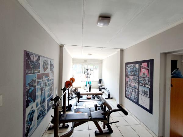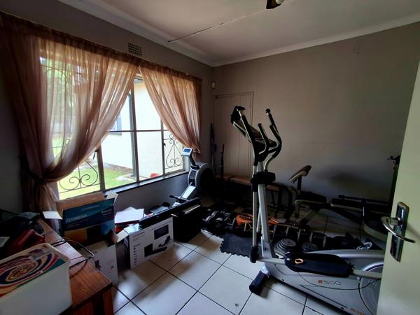 The home boasts five well-proportioned bedrooms and two bathrooms, providing comfortable accommodation for a large family. One of the rooms is currently configured as a dedicated home office, complete with extensive shelving and natural light, while another versatile space serves as a home gym, highlighting the property''s adaptability. Additional amenities include staff quarters, a single garage, and four parking spaces, ensuring convenience for residents and guests.