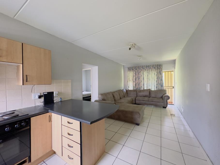 The open-plan kitchen is equipped with a built-in oven and hob, complete with a cozy breakfast nook, perfect for casual dining or enjoying your morning coffee. The bright and airy lounge area flows seamlessly from the kitchen, creating an inviting space for relaxation or entertaining guests.
