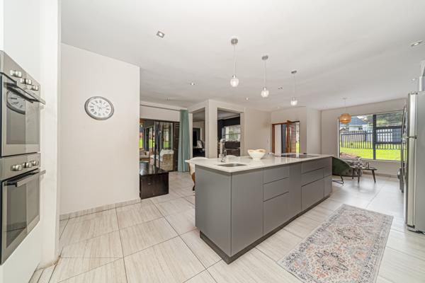 Step into a light-filled haven where open-plan living takes centre stage. The heart of the home is an ultra-modern kitchen with clean lines, high-gloss cabinetry, integrated appliances, and a central island designed for both function and flair. A scullery and laundry ensure clutter-free convenience, while the layout seamlessly flows into the dining area, TV lounge, and a chic formal living space all flooded with natural light and wrapped in views of the lush outdoors.