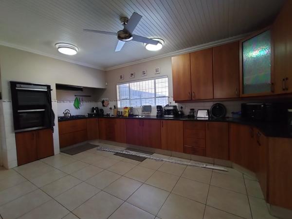 Modern kitchen in Cherrywood finish with granite tops, Gas stove and double eye level oven, formal dining room, scullery with dish washer connection and and laundry connection. In the centre of the house is the study with internet connection.