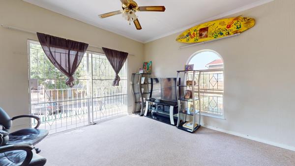 The property features three generously proportioned bedrooms, all with built-in cupboards for ample storage. A practical linen cupboard adds even more convenience. The two bathrooms make family living or hosting guests effortless.