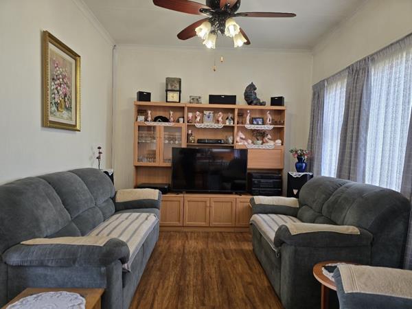 Discover comfortable suburban living in this 91 sqm apartment located in Albemarle, Germiston. This well-appointed residence offers a practical layout designed for everyday convenience. The interior features a spacious lounge and a dedicated dining area, both benefiting from ample natural light streaming through large windows and sliding doors. Durable wood-look flooring extends throughout these living spaces, complemented by ceiling fans for enhanced air circulation. The functional kitchen provides essential amenities for daily meal preparation.
