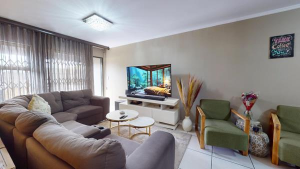 Inside, the home is fully tiled throughout, creating a sleek, low-maintenance living environment. The spacious open-plan living area flows seamlessly into a contemporary kitchen featuring granite countertops, a breakfast nook, and ample cupboard space perfect for both everyday living and entertaining.