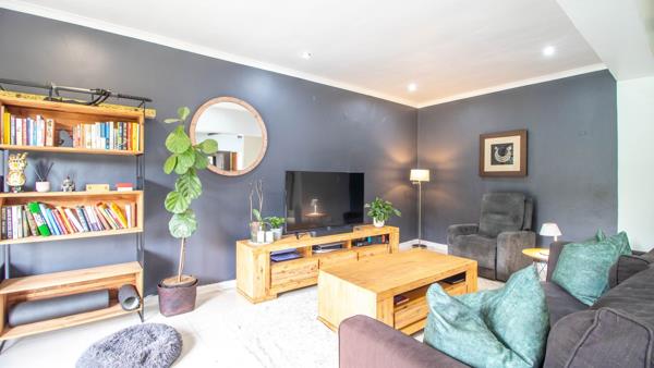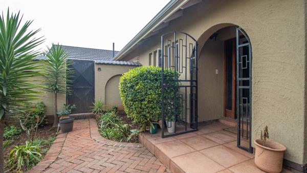 The open-plan dining and lounge areas seamlessly flow onto the patio through two sliding doors, perfect for entertaining, and includes a lapa for outdoor gatherings. The back garden is great for children and pets. The home is equipped with Spanish burglar guards and benefits from the added security of being in the Highway Gardens boom.