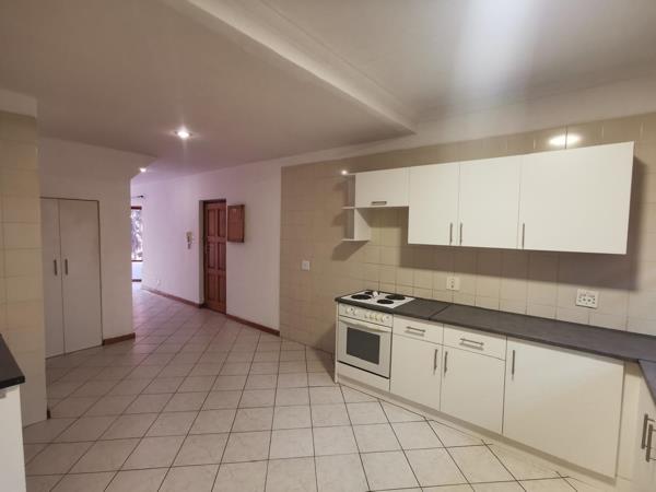 The unit boasts an open-plan lounge leading to an enclosed balcony. The spacious kitchen is fitted with ample built-in cupboards and provides space for 2 under-counter appliances. 2 Generously sized bedrooms the main bedroom has an en-suite, ensuring privacy and convenience, while the second bedroom is well-sized with built-in cupboards. Guest toilet - convenient for guests.