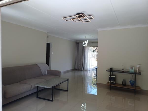 This beautifully renovated home comprises 3 spacious bedrooms, 2 bathrooms, open-plan lounge, dining room and kitchen. The kitchen is ultra-modern with gas stove, separate scullery and laundry. The entire house is tiled throughout with brand new tiles. Exquisite light fittings add elegance to this lovely home. There is a flatlet attached for extended family or for rental income. Double garage with additional parking.