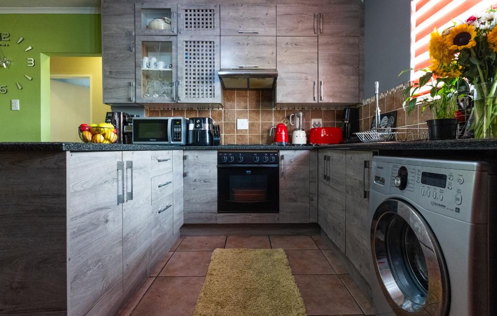 The modern kitchen is fitted with exquisite granite countertops, abundant cabinetry, a countertop stove, and an under-counter oven, providing ample space for all your appliances. The unit features two generously sized, tiled bedrooms, each equipped with built-in cupboards, and a full, contemporary bathroom. The estate offers round-the-clock security, your peace of mind is a top priority and two swimming pools for residents'' enjoyment.