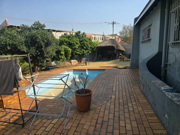 Main house offers a lovely big kitchen, lounge, dining room, tv room and an office with another 3 bedrooms with 2 bathrooms - on suite bathroom and loads of cupboard space. There is a double garage with a flat upstairs (full flatlet), 1 bedroom, lounge, kitchen and bathroom - very neat!! GOOD RENTAL INCOME!!! Pool is not in working condition. Come make this lady yours. Close to Castleview shopping centre. A little TLC and she will be good to you and your family. Good security.