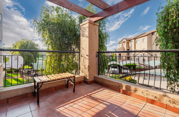 A well-sized balcony overlooking the lovely estate,
