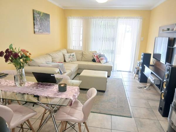 The home offers three comfortable bedrooms and three well-appointed bathrooms, ensuring ample space and privacy for all residents. Each room is designed to provide a peaceful retreat within this secure environment. Outdoor living is enhanced by a private garden and a balcony, perfect for enjoying the South African climate. The property also includes two garages, providing secure parking and additional storage.