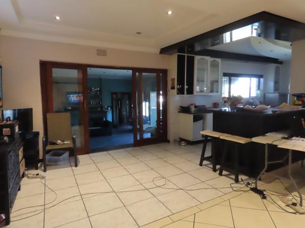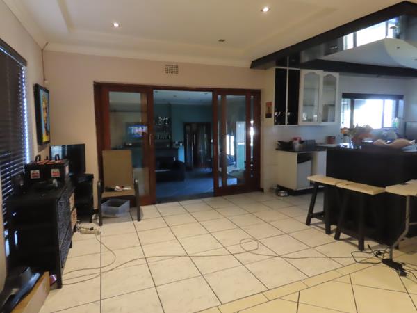 A covered entertainment area with a built-in braai is perfect for gatherings. The property also includes a separate flatlet with a bedroom, lounge area, and bathroom.