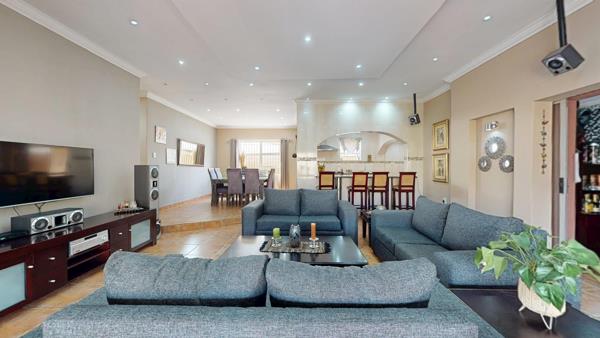 The undercover patio on the ground floor is ideal for year-round entertainment, leading out to a beautifully landscaped garden. Enjoy the Lapa with built-in braai, all overlooking a sparkling medium-sized swimming pool the perfect oasis for summer days.
