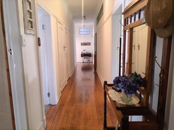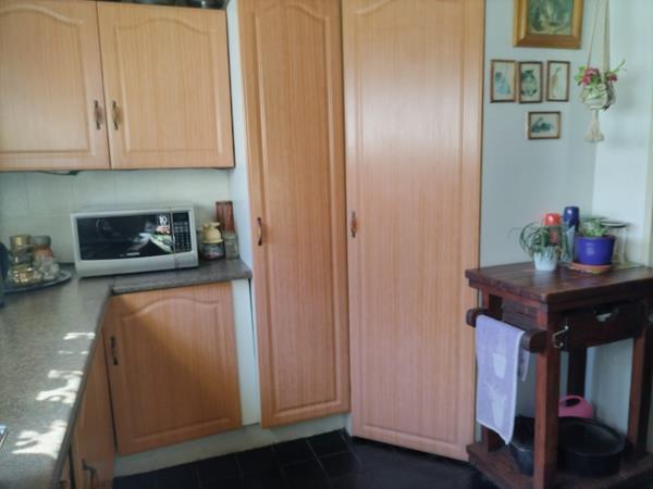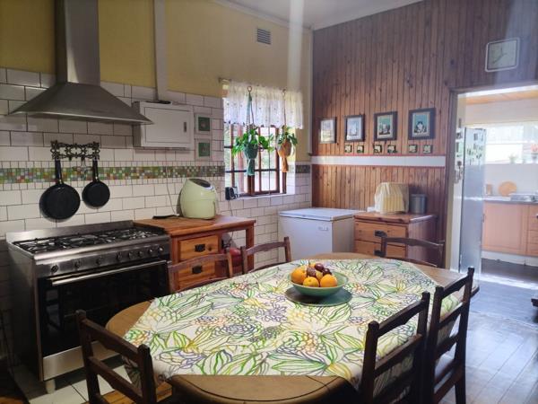 Adjacent to the bar is a well-appointed kitchen fitted with ample cupboards space, a convenient scullery, and a modern gas stove. The passage from the kitchen includes linen cupboards and a separate guest toilet for added convenience.