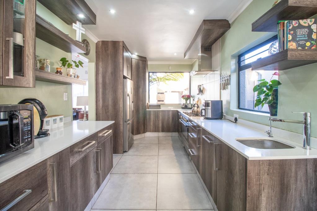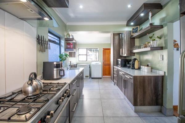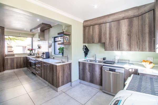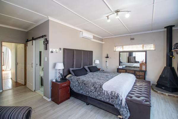 HOUSE 1 - Offers you 4 spacious bedrooms bic, main bedroom with walk-in closet, fireplace and air-con, 2 ultra modern bathrooms MES, open plan lounge - dining room with antracite fireplace in lounge, ultra-modern kitchen, big double garage 7 x 7 m with built in shelves all around and automated doors, carport for 3 cars, carport for trailer, natural pool with solar, 2 x entertainment areas, built in braai and boma, zozo for storage, 300 litre solar geyser, air-con, 2 entrances leading into the property, each dwelling has it own entrance. CCTV cameras and much more to mention.