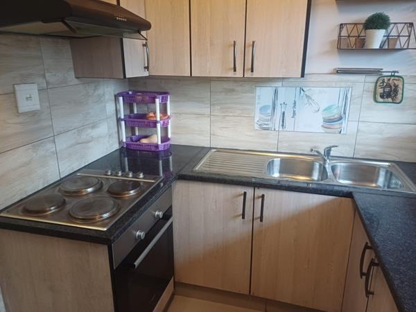 Welcome to your new home! This 2 bedroom, 1 bathroom haven offers pace of mind with 24-hour armed response, burglar bars, closed-circuit TV, and security gates. Tiled throughout for easy maintenance, it features modern amenities including cooling fans, a carport, extractor fan, stove hob, and under counter stove.