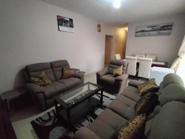 The unit is offering two spacious bedrooms with built-in cupboards, a beautiful kitchen, and an open-plan lounge-dining room area. Bathroom is neat with a basin , toilet and bath tub .