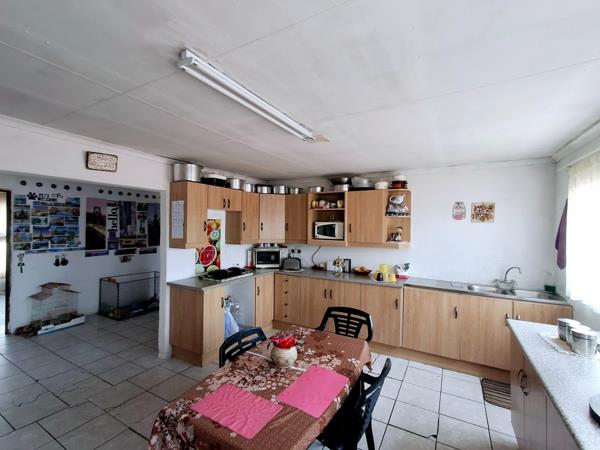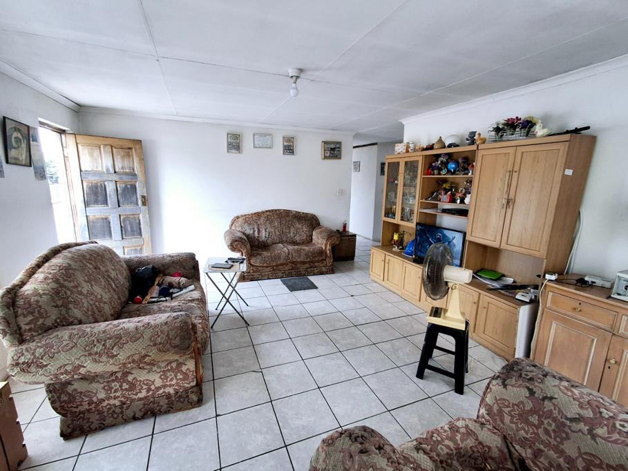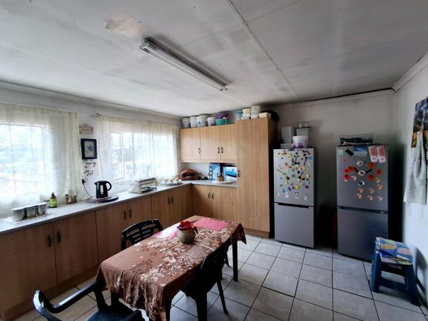 Step inside to discover two distinct lounges, providing versatile spaces for relaxation and entertainment. The property boasts two functional kitchens, each equipped with ample cabinetry and double sinks, catering to diverse household needs. Tiled flooring extends throughout the main living areas, ensuring durability and ease of maintenance. Large windows in the living spaces and kitchens invite abundant natural light, creating bright and welcoming interiors.