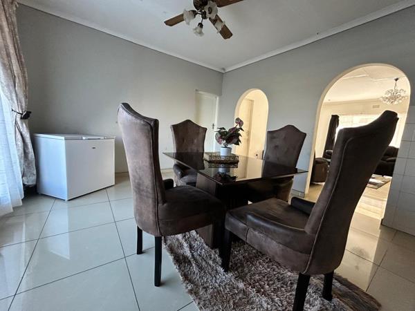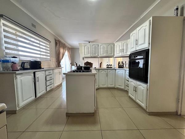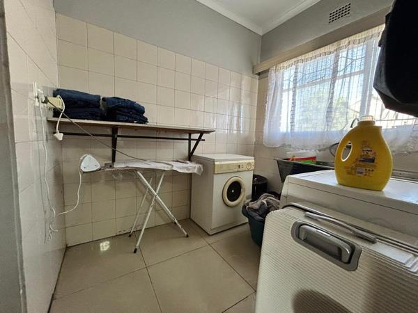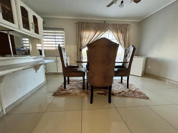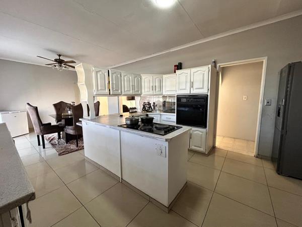The home includes a fully fitted kitchen with built-in cupboards, a laundry area, and an open-plan tiled lounge and dining room. The full bathroom is equipped with both a bathtub and a shower. For added convenience, the property also includes a double automated garage.