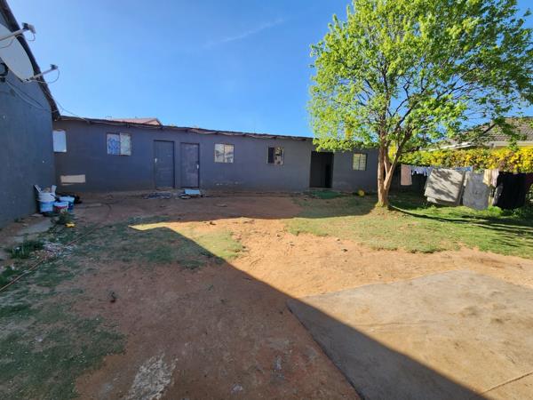 Investment property fully tenanted with 15 rooms with an income of R23 000. The house is converted into 5 rooms, bath and a toilet. Garage is converted into two rooms. There are 7 outside rooms in the property with pre-paid electricity and outside toilets. There is still a lot of space in the yard for more development
