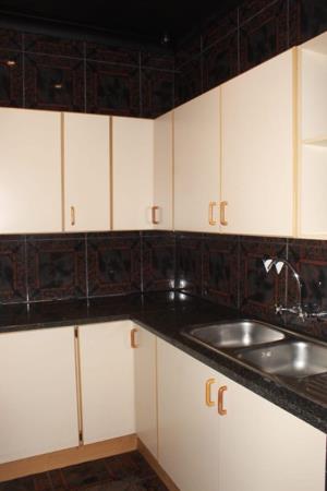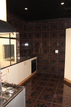 A fully tiled spacious kitchen with a separate scullery, ample cupboard space, gas stove and extractor. Cooking will always be fun in this kitchen.
