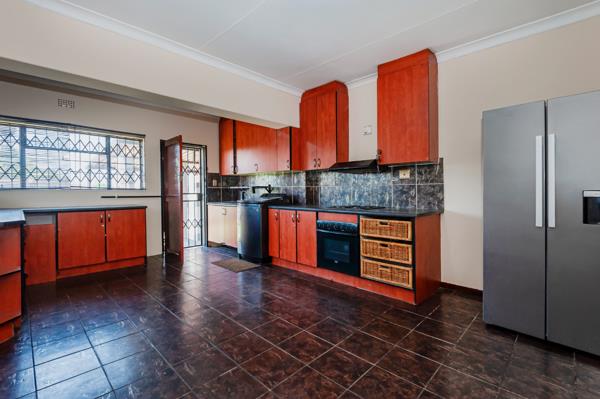 An extremely spacious kitchen with ample cupboard, counter and appliance space,