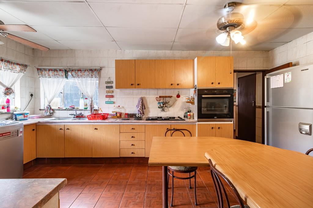 3 bedrooms with bic, full bathroom, lounge, dining room, kitchen with breakfast nook, verandah, entertainment area, carport for 5 cars, gagarage for 3 cars and huge workshop with office and toilet.