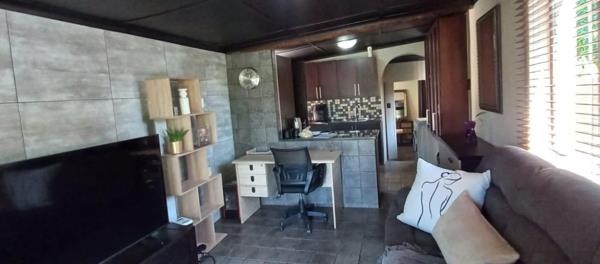 The allure extends outdoors to a private swimming pool, offering a refreshing oasis for relaxation and leisure during warmer South African days. The expansive erf provides abundant potential for bespoke landscaping or further outdoor enhancements. Practicality is assured with a single garage, while the pet-friendly environment welcomes beloved companions.