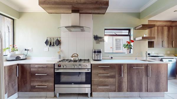 The timeless designed kitchen is made for living and cherishing each meal and is a true highlight, boasting a gas hob and electric stove the best of both worlds. Ample cupboard space and modern design create the perfect hub for family connection, with space for most appliances, thus keeping the kitchen organised, sleek and functional.