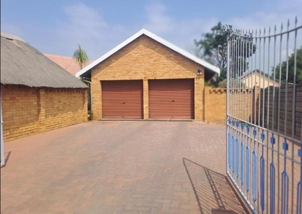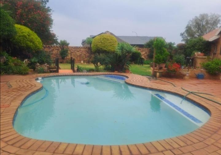 Discover an enchanting suburban sanctuary in Elspark, Germiston, where unique architectural character meets serene outdoor living. This distinguished residence features a distinctive thatched roof element and robust brick construction, creating immediate kerb appeal. A secure, paved driveway leads to a double brick garage and additional parking for four vehicles, while a high perimeter wall and secure gated entrance ensure unparalleled privacy. The expansive 1048 sqm erf hosts a sparkling swimming pool, an extensive paved patio, and a charming thatch-roofed lapa, all nestled within a lush, mature garden an idyllic setting for sophisticated entertaining.