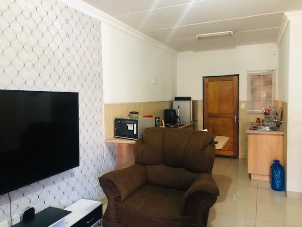 The unit comes with a spacious lounge area hosting an open plan kitchen with plenty of cupboards and a breakfast noek. The kitchen has a back door that opens to a braai area or laundry area. Really perfect for entertainment.