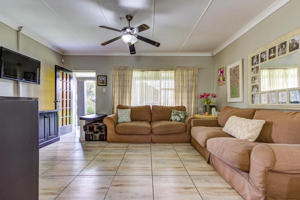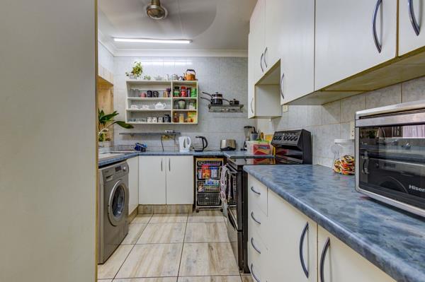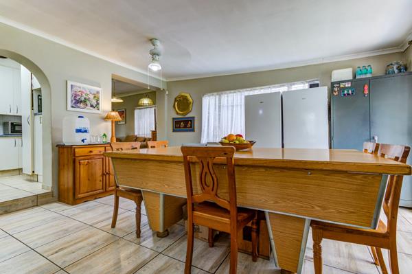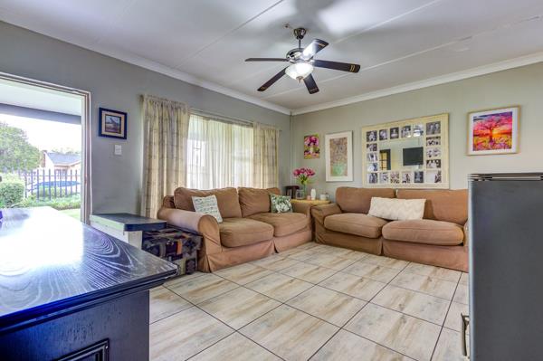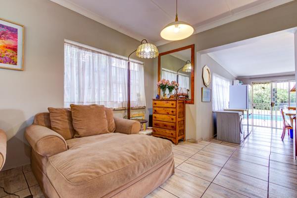 The home offers three spacious bedrooms, all tiled and fitted with built-in cupboards, each enjoying large windows that invite in natural light and garden views. The master suite is a true retreat, featuring a versatile pyjama lounge that can easily serve as a private study or walk-in dressing room, leading into a beautiful en-suite bathroom.