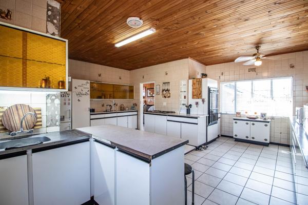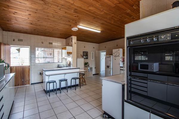 Outdoors, the expansive grounds host a sparkling swimming pool, offering a refreshing escape during warmer months. Parking is abundant with a single garage and additional space for three vehicles. The property also includes convenient domestic rooms and is pet-friendly, catering to every family need. Security is paramount, featuring robust burglar bars and a security gate for peace of mind.
