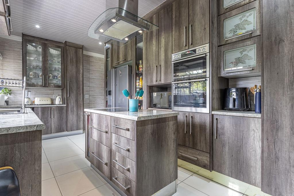 The outdoor entertainment area includes a thatched lapa, sparkling pool, and an undercover patio, perfect for hosting family and friends.