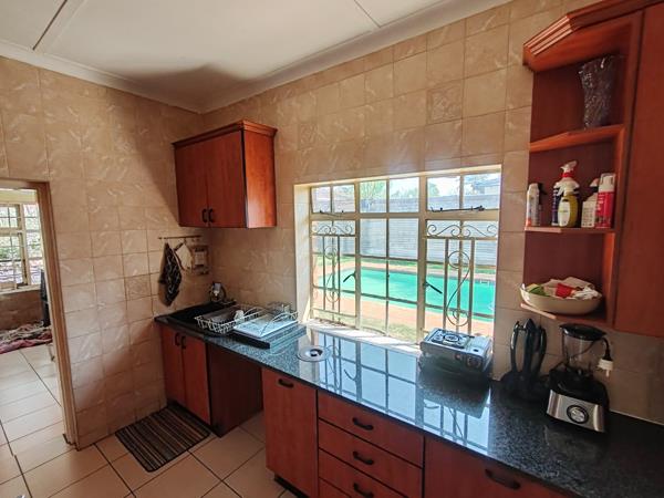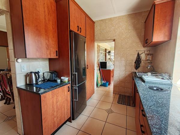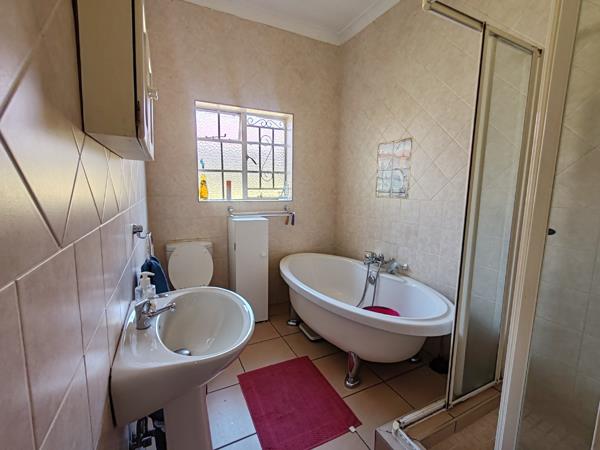 The home has 3 spacious bedrooms with built in Cupboards and wooden floors. There is a full bathroom and a big oval bath. Extra storage cupboards in the passage.