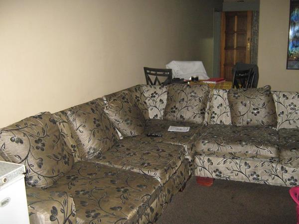 Big open plan dining area and lounge leading out to a balcony overlooking a sports field.