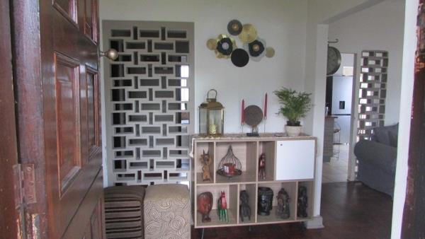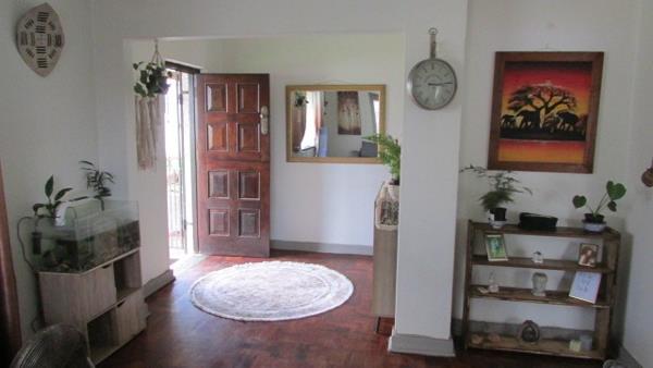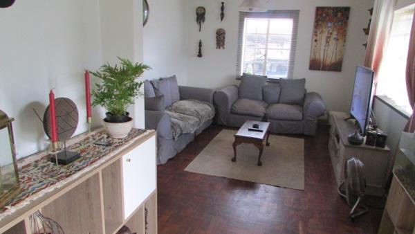 Down the passage are two generously sized bedrooms with classic parquet flooring and built-in cupboards. The master bedroom opens onto a private balcony, offering peaceful views of the expansive back garden.