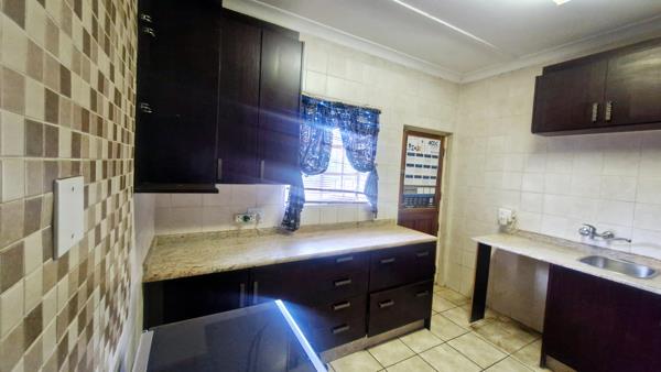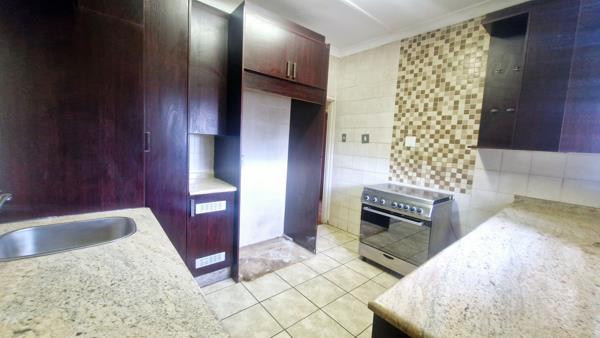 The modern Kitchen is fitted with a Gas stove, built-in cupboards, and a pantry. Other features include 3 Bedroomsall with built-in cupboardsand 1 bathroom with a showeroverbath, basin, and toilet.