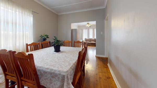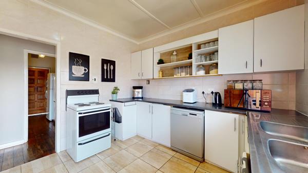 As you enter through the main gate, youre greeted by an expansive carport accommodating up to six vehicles, with covered parking for four. From the back garden, step into a contemporary kitchen featuring ample built-in cupboards, modern finishes, and convenient flow into the entrance hall. The open-plan living and dining areas are enhanced by elegant wooden floors, creating a warm and inviting atmosphere perfect for family gatherings or relaxed evenings.