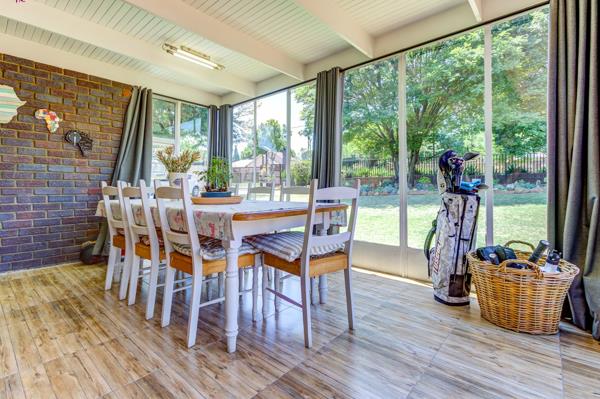 Accommodation includes four comfortable bedrooms, with one featuring an ensuite bathroom, alongside an additional 1.5 bathrooms. The outdoor space is a true oasis, featuring a sparkling swimming pool and a well-maintained garden, providing a private retreat. For peace of mind, the property is equipped with an alarm system, electric fencing, and CCTV.
