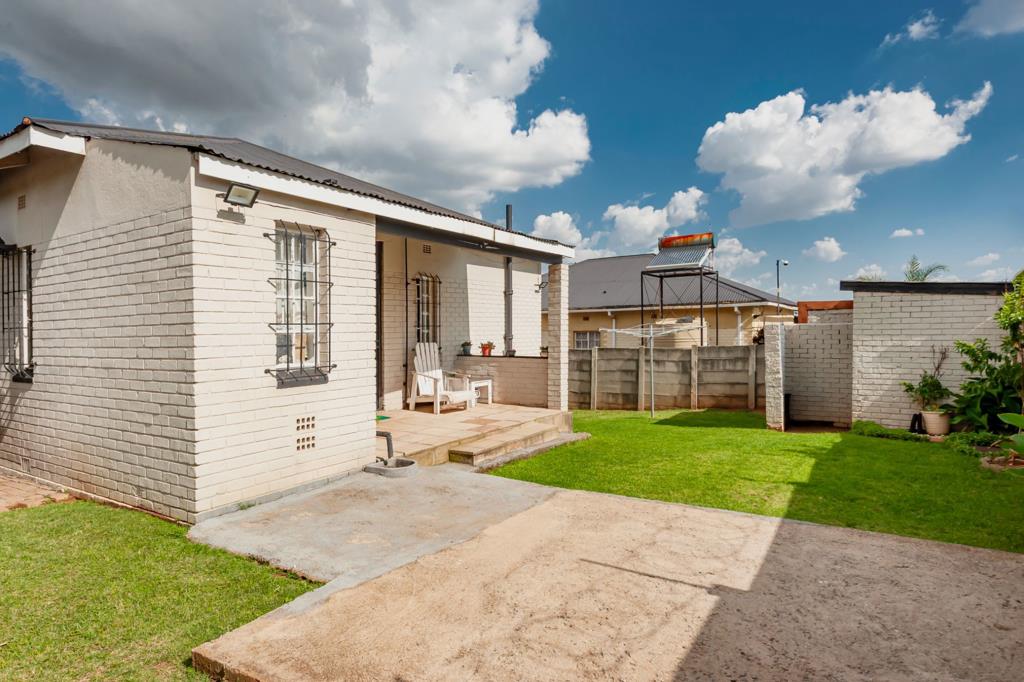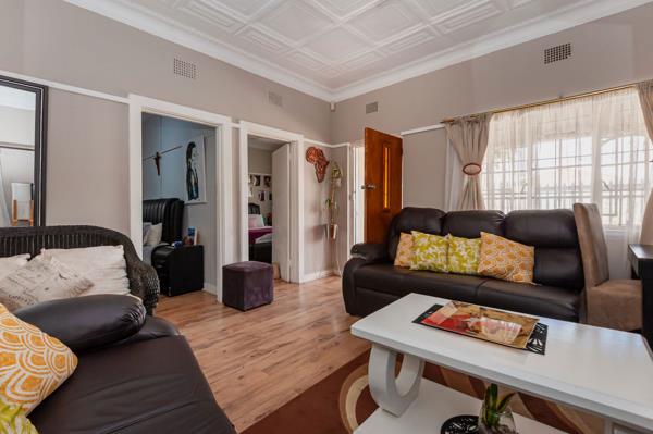 Low maintenance garden leads to covered patio front and back. The open plan lounge and dining room leads to a very neat kitchen. Three bedrooms with built-in cupboards and laminated flooring. One bathroom.